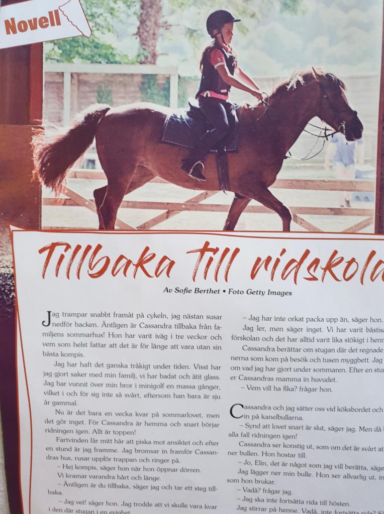 Jag hörde av mig till Min Häst i våras och frågade om de behövde noveller. Det gjorde de. Min första hästnovell var med i tidningen i juni. Just nu kan alla hästintresserade läsa min ”Tillbaka till ridskolan” i höstens tidningspåse. Och fler noveller är på gång, jag har precis skrivit klart en med Halloween-tema och en som utspelar sig på julafton.